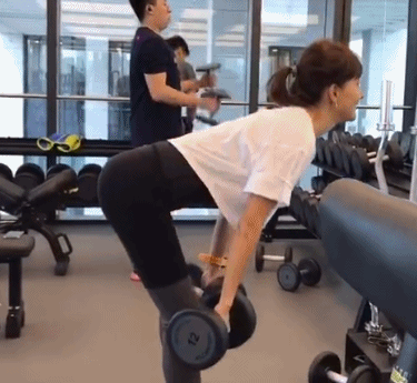 尤其是留着一头清爽短发的她,素颜现身健身房,手拿杠铃练手臂线条,身姿体态非常优美,曲线感十足,没有臀部下垂、盆骨前倾、臃肿肥胖等问题。