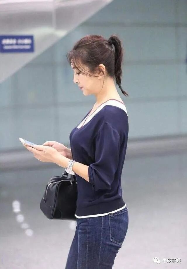她的身上丝毫没有显现出中年肥胖、油腻的感觉,气质依旧清爽大方,匀称精致的身材让气质变得更好。