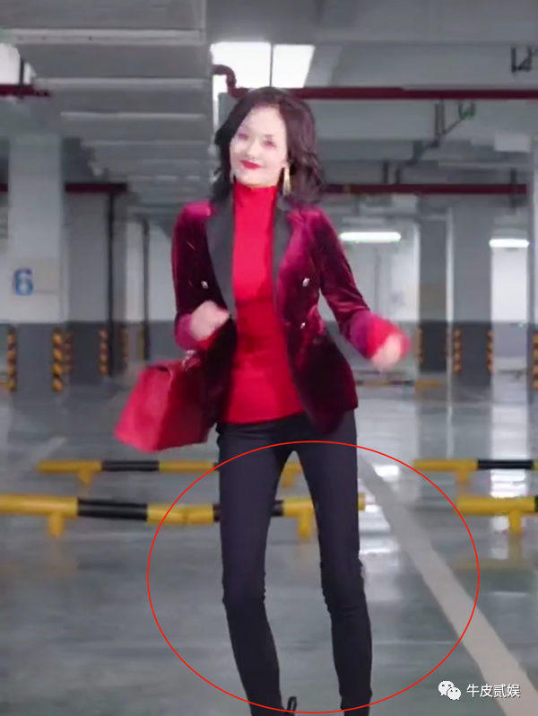 从画面中可以看出,一件暗红色西装外套,一件颜色鲜艳的内搭,再加上一条黑色紧身裤,一双筷子腿又直又细非常抢镜,完全和年过半百不沾边。