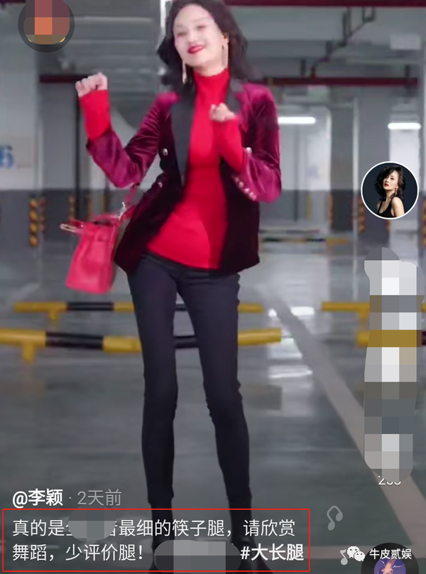 比如家里的停车场,停下车子就开始扭动自己的身体,并配文称是全平台最细的筷子腿,但是却让大家多欣赏她的舞蹈,少评价腿。