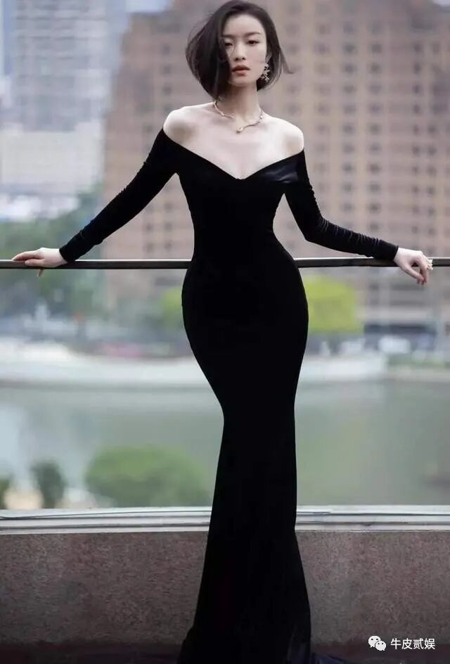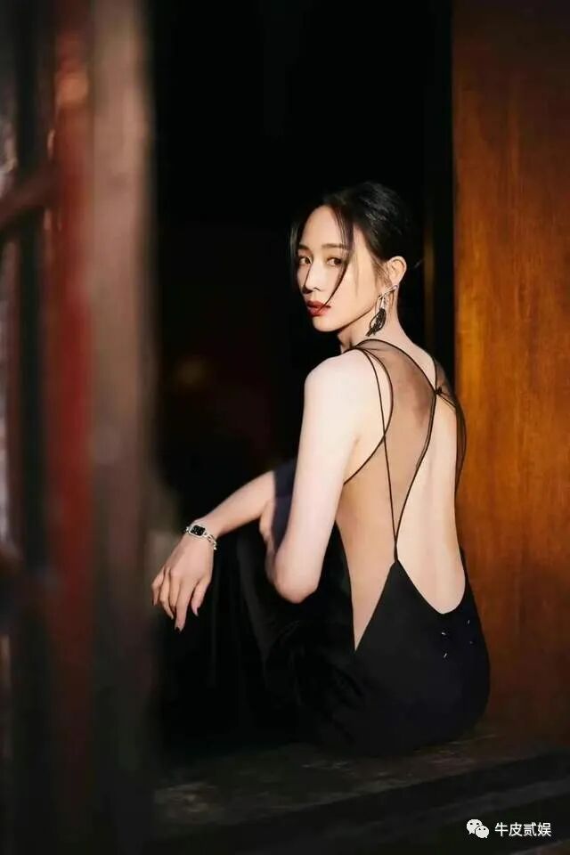 整个后背在黑色晚礼服的衬托下,洁白而又无限丝滑,再加上她那勾人的眼神,性感又撩人。