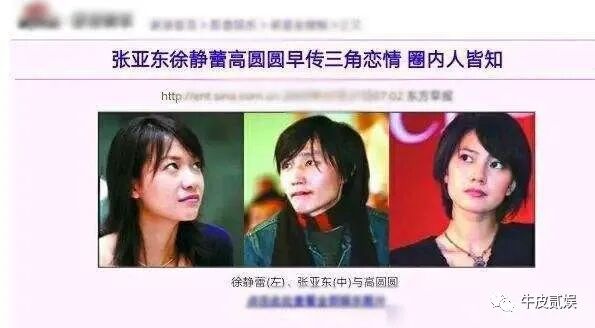 事实上,彼时的张亚东是有女朋友的,他的女朋友不是别人,正是“国民女神”高圆圆,但即便这样,高圆圆还是输给了老徐。