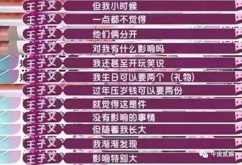从这年起,王子文就要成为一名单亲家庭的孩子了,但这样的单亲家庭生活并没有在她的成长过程中留下什么阴影。