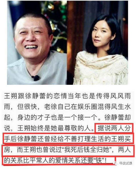 但她也很够意思,在那两年王朔落魄的时候,她不忘旧情,还给王朔买了房子,而王朔也多次声称,自己死后所有遗产都留给老徐。