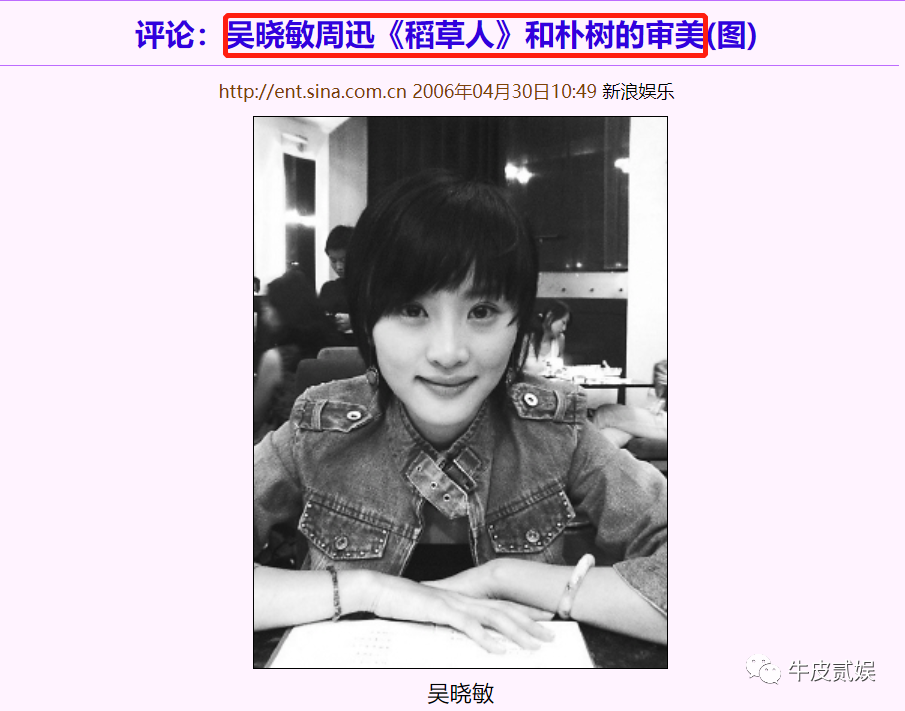 吴敏菲,又叫吴晓敏,吴岱凝,1981年出生于上海,是上戏表演系的高材生,比朴树小了8岁。