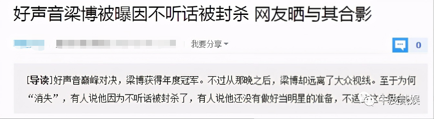 甚至还有梁博因“不听话”被“封杀”的消息被爆出。
