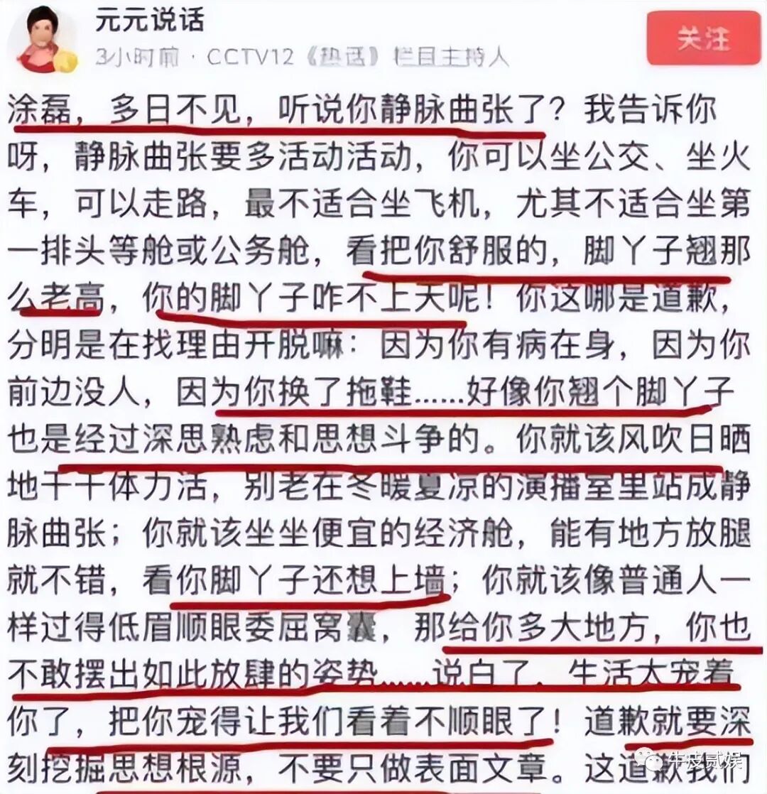 她发文怒斥涂磊,称涂磊道歉是欲盖弥彰,是公然的狡辩。