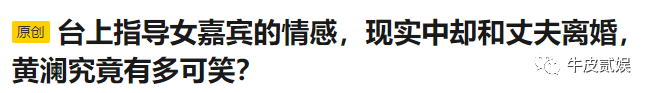 虽然离婚这件事本不是错,但黄澜的问题是,明明有千条路万条路可以走,她却非要当情感导师。