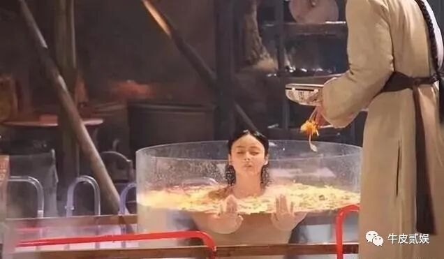 可实际上拍戏时正值冬天,寒风凛冽,浴桶里根本没有水,得亏里面还藏着一个小太阳,这段洗澡戏才勉强拍完。