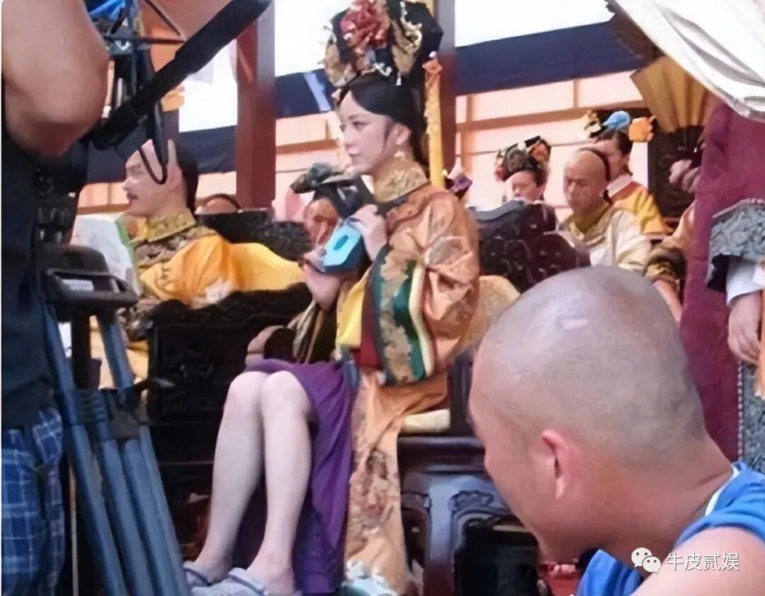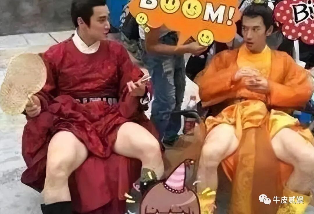 下面这两位属于豪放派了,在拍摄间隙直接撩起长袍,露出大腿,形象早已抛之脑外了,还是避暑要紧。