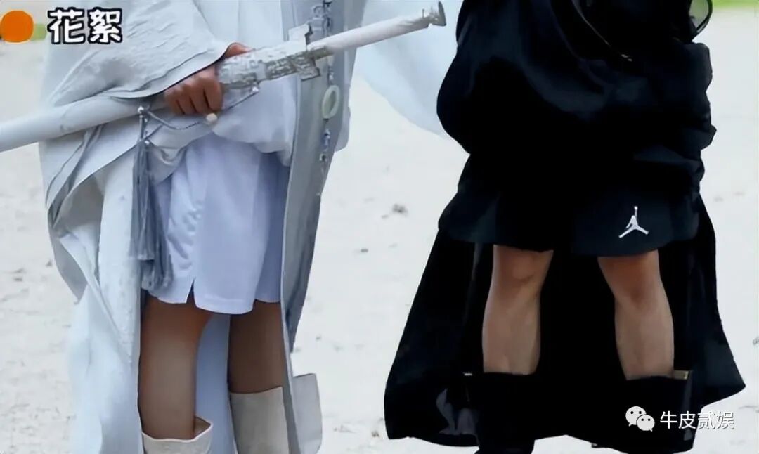 肖战和王一博在拍摄《陈情令》时同样是“一个人,两个季节”,上半身仙气十足,下半身直接大裤衩,还一黑一白,十分相衬。