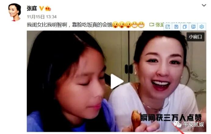 面对质疑,张庭女儿也曾发视频回应,解释说:“自己反正又不是靠脸吃饭,大方调侃道,我吃饭靠的是嘴。”