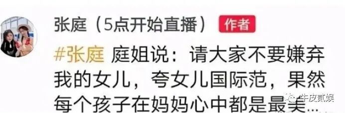 面对网友对自己女儿长相的攻击,张庭不止一次在公共平台发文表示: