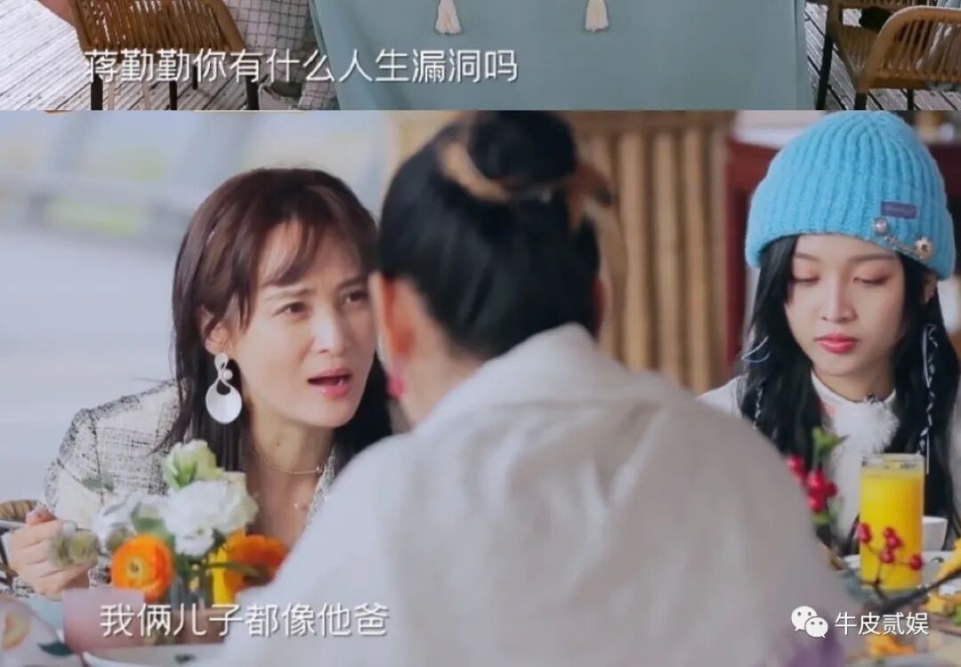 蒋勤勤一脸痛惜地表示:“俩儿子都像他爸”,看来她自己也很可惜。