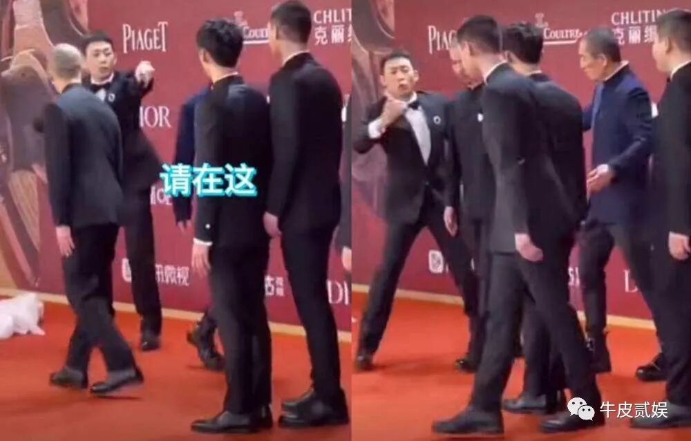 身为影帝的张译,充当红毯上的劳务人员,在那里帮忙指挥小弟们站位,以免他们出丑陷入尴尬。