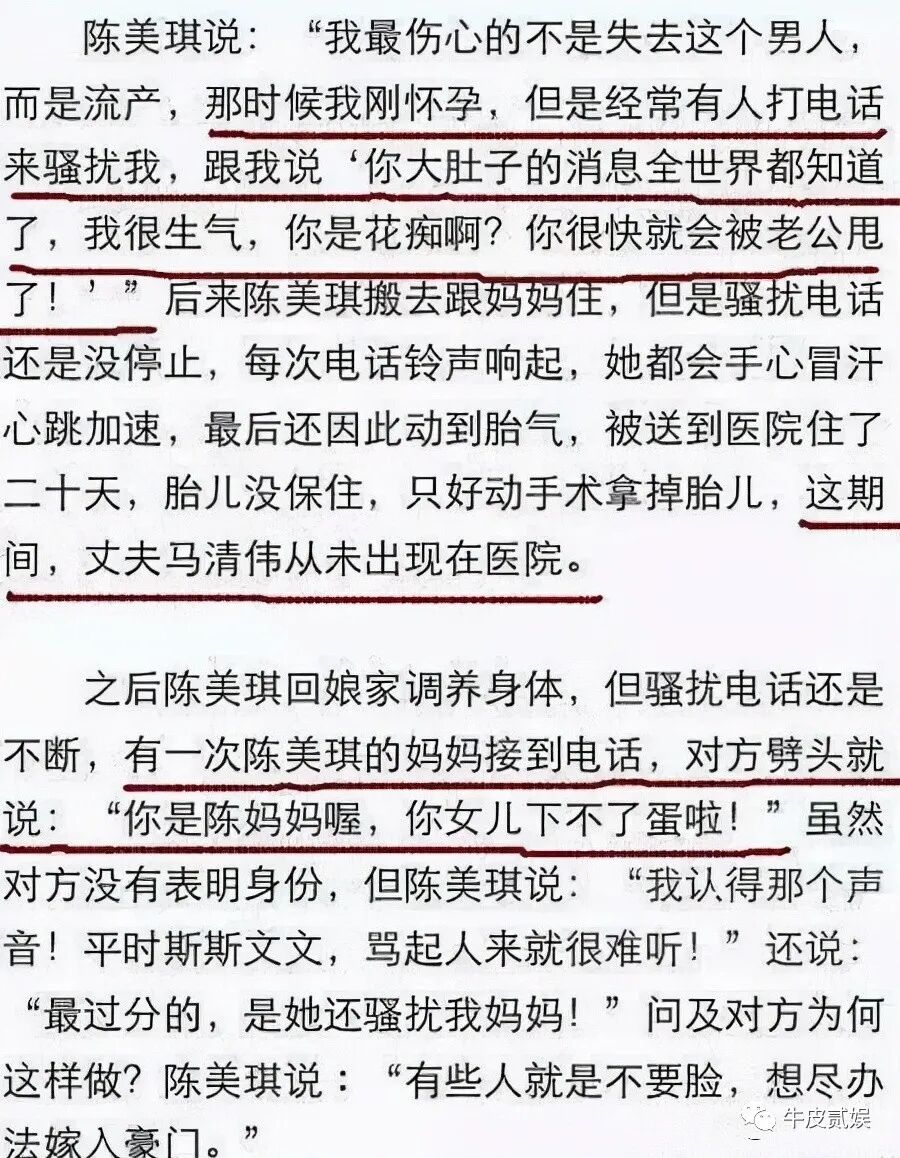 连番的骚扰使陈美琪精神崩溃,动了胎气,以至于孩子流产了,医生还告诉她以后不能再生孩子了。