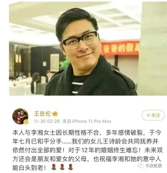 随后王岳伦在平台上发布的声明也坐实了两人离婚的传闻。