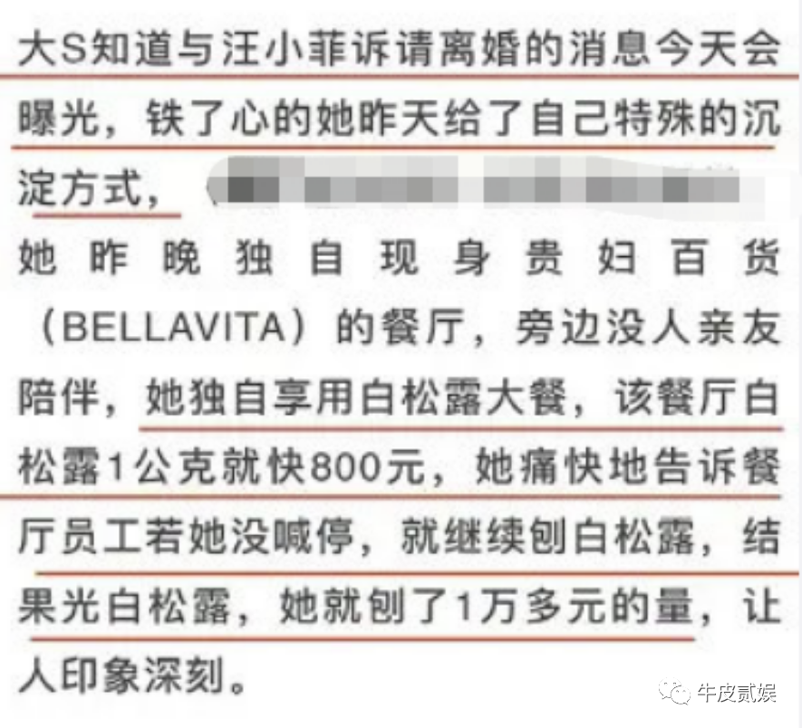 为了满足大S的需求,无数店员都在后厨不停地刨松露,而大S则始终都在面无表情的享受美食。