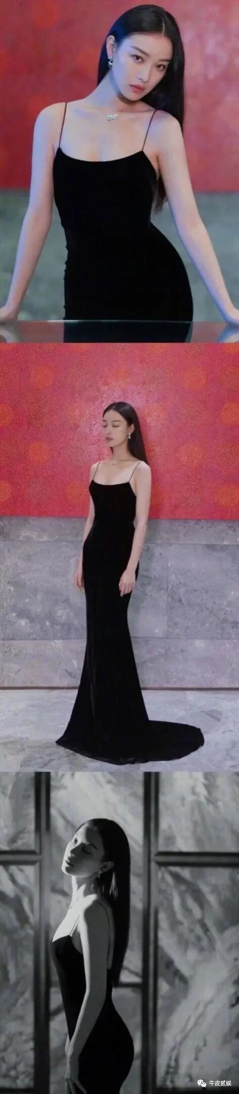 一身黑色吊带裙,凸显身材凹凸有致,身材比例是超级的好。