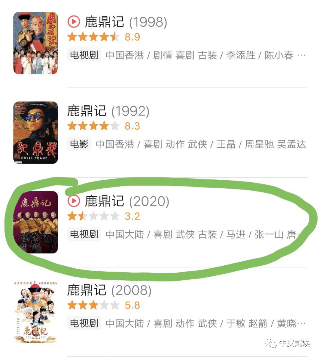 他出演的《鹿鼎记》,豆瓣最新评分3.2,史上最低,甚至不如“油腻教主”黄晓明的版本。