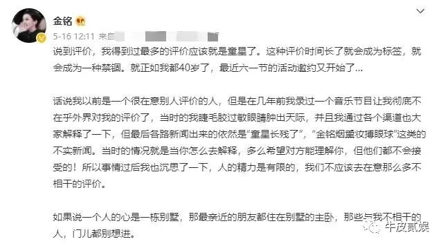 好在,如今的金铭减肥之后好看了不少,她也放下了网友说她“长残”的事。