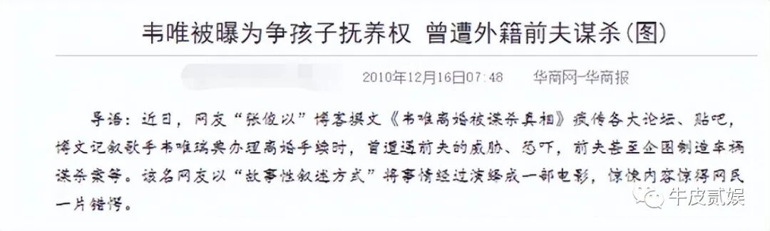 这老哥不但不愿意离婚,而且还多次用死亡威胁她,且很多次都差点要了韦唯的小命。