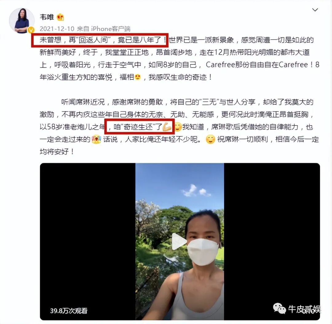 不得不说,自从和瑞典老公离婚后,韦唯虽然也经历了一些生死时刻,但最终她还是挺过来了。