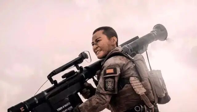 蒋璐霞这个名字听上去很陌生,其实她就是《红海行动》中的女机枪手佟莉,一头粗粝的板寸,配合硬朗飒爽的英姿,给人留下难以磨灭的印象。