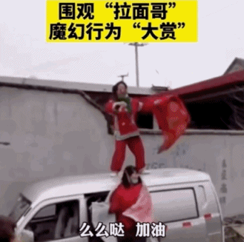 他们有的在拉面哥做面时直接影响其工作,有的则在拉面现场做出各种手舞足蹈的迷之行为。