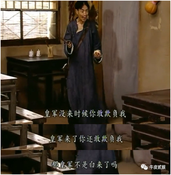 和“黄金标”对戏时,一句“皇军没来时候你欺负我,来了你还敢欺负我,那皇军不是白来了吗”瞬间成了笑料包袱。