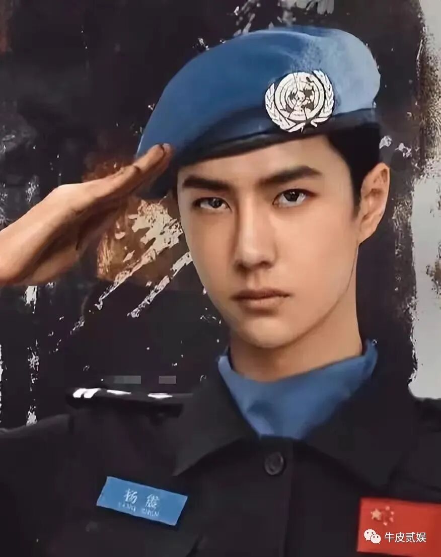 剧中,王一博饰演的是一位名叫杨震的维和警察,根据剧照来看身穿蓝色制服头戴大檐帽的王一博的确帅气非凡。