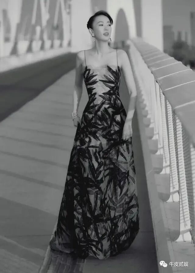 这次梅婷穿着也很保守,上半身没有一点外露,严实的只剩一个头了,黑色亮片装很大气。
