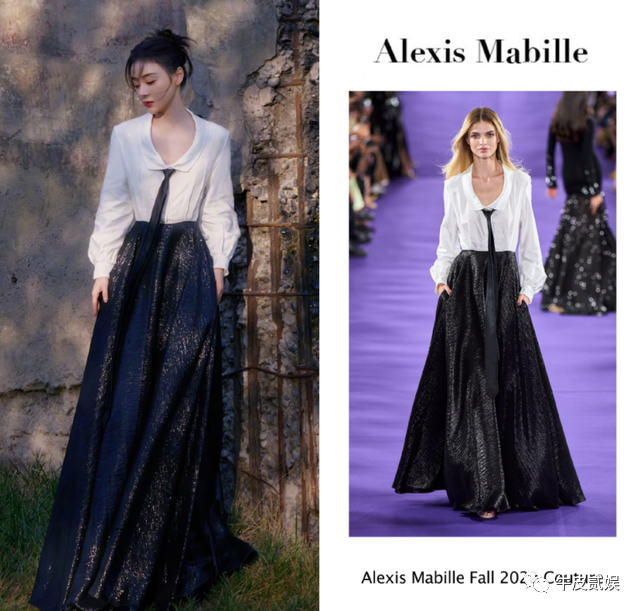 她的这身衣服是艾力克西斯·马毕2022 秋冬高级的定制款,和模特相比,袁姗姗丝毫不输于国际模特。