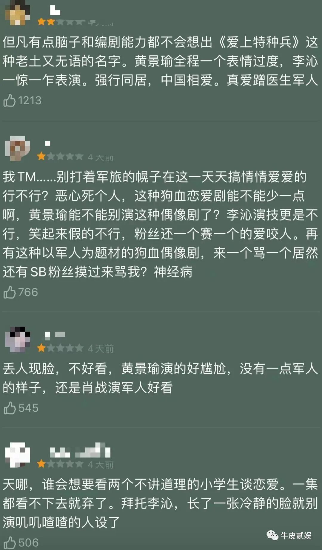 穿上军装后,他们所呈现出来的军人气质,愣是变了味儿,整部剧下来,一直都是在尬演,最终尬了自己,也尬了观众。