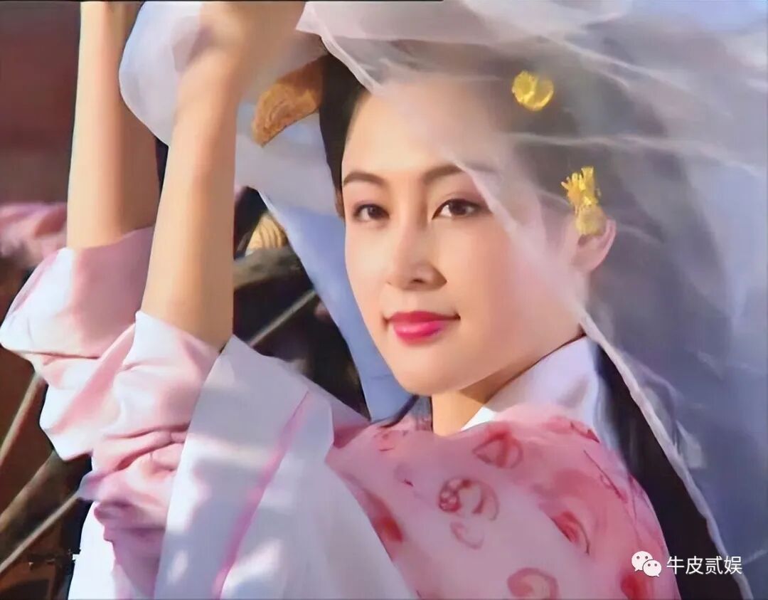 与同穿花嫁衣的李玉湖在仙女庙内躲雨时,当杜冰雁轻轻揭开红盖头后,有了鲜媚艳丽装饰衬托的小李琳,她的美又是另一番璀璨夺目。