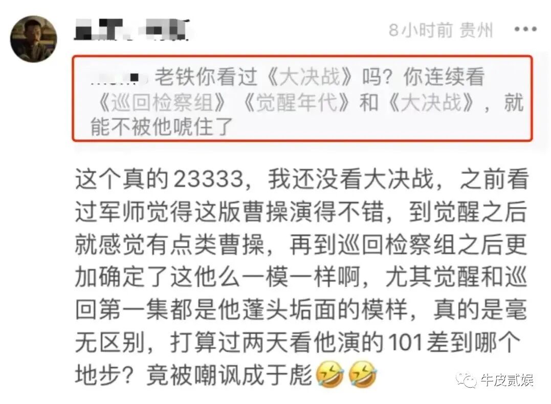用网友们的话来说就是,如果将《觉醒年代》《大决战》《巡回检查组》三部剧放在一起看,你就会发现,于和伟演啥都像是在演他自己。