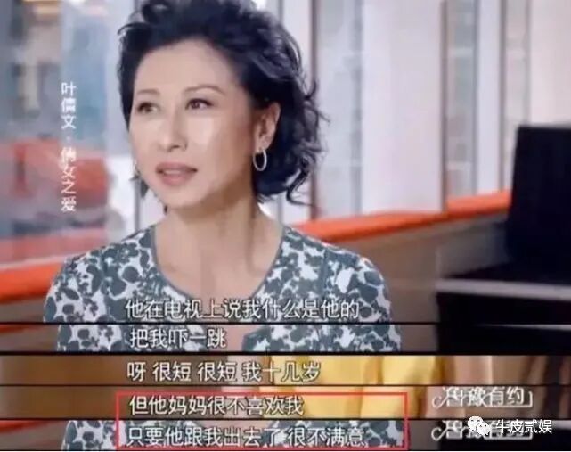 话里话外对儿子的现任女友很不满意,而这位现任女友正是叶倩文。