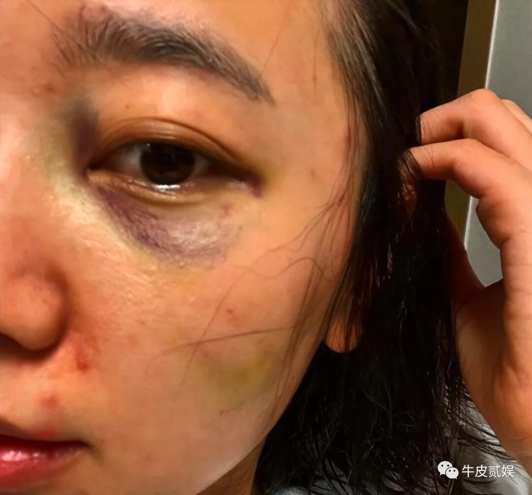 据悉,徐莎朗首先在社交平台上发文称自己被老公家暴,还晒出了自己受伤的照片,眼圈附近一片青紫,看上去很是严重。