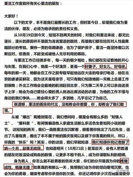 2012年,董洁工作室发布的声明打破了两人的恩爱局面。