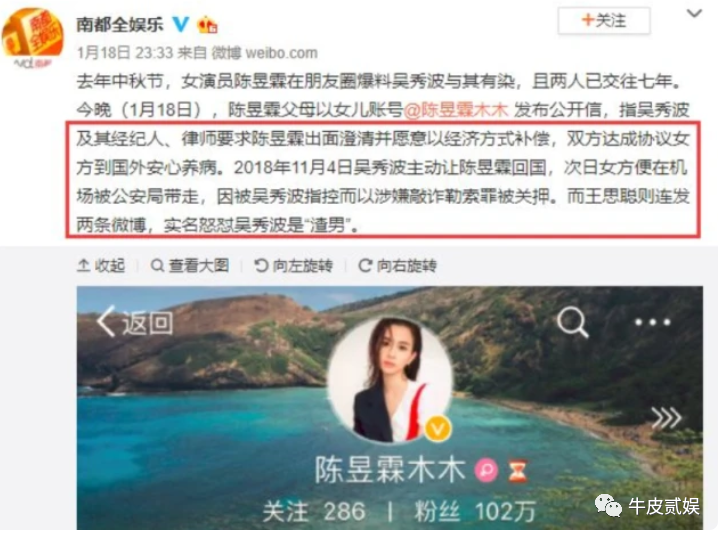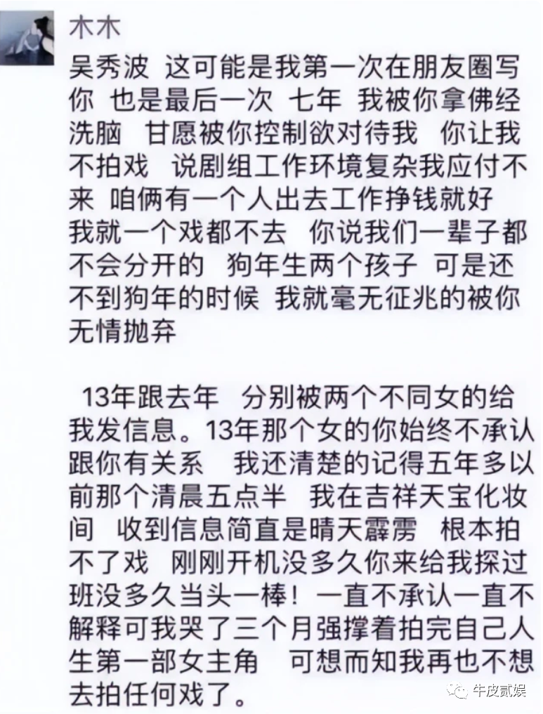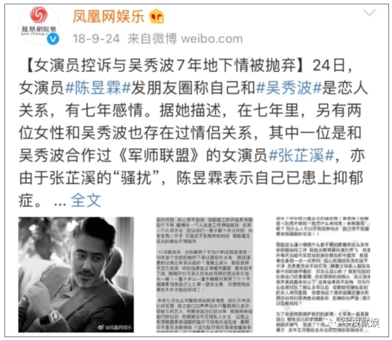 陈昱霖用长文曝光和吴秀波不一般的关系,并且称两人已经在一起长达7年。