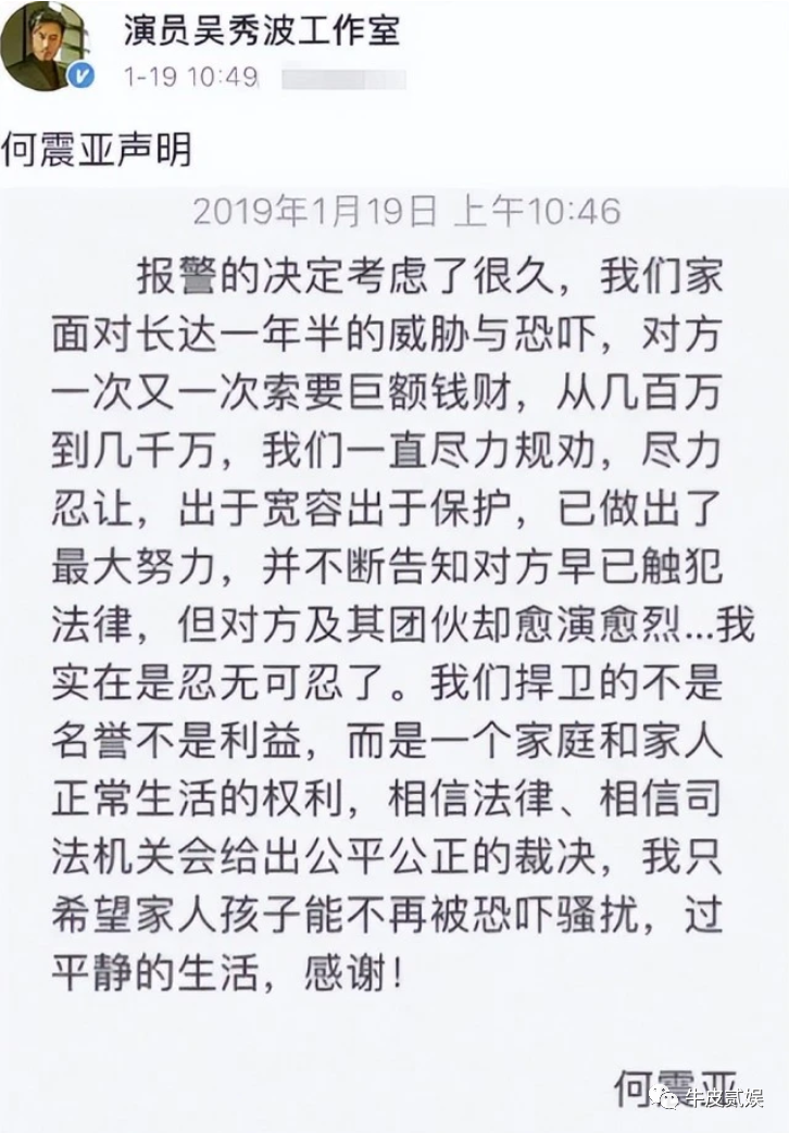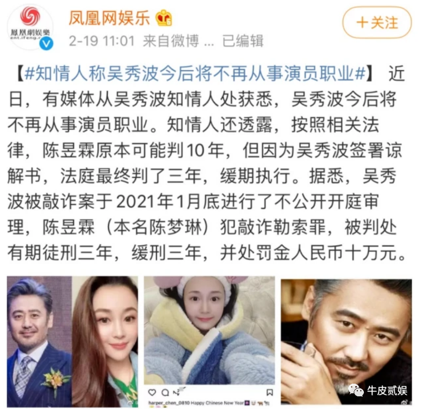 2019年1月,再次爆出陈昱霖被吴秀波送进班房的消息。