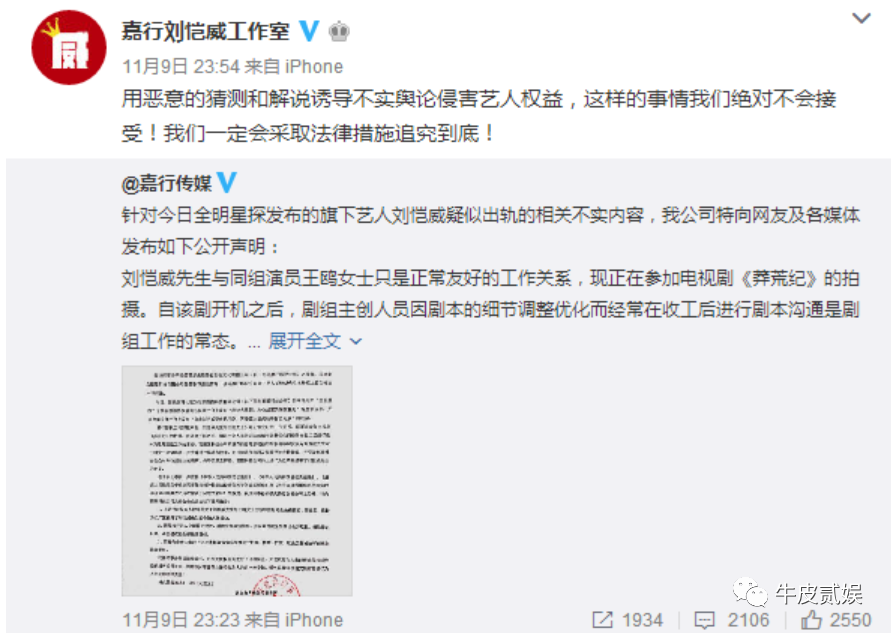 杨幂的公司嘉行更是不遗余力为刘恺威澄清。