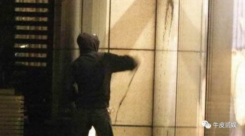 随后便有几名男子拿着带来的墨汁,直接泼向了外面的巨幅海报。