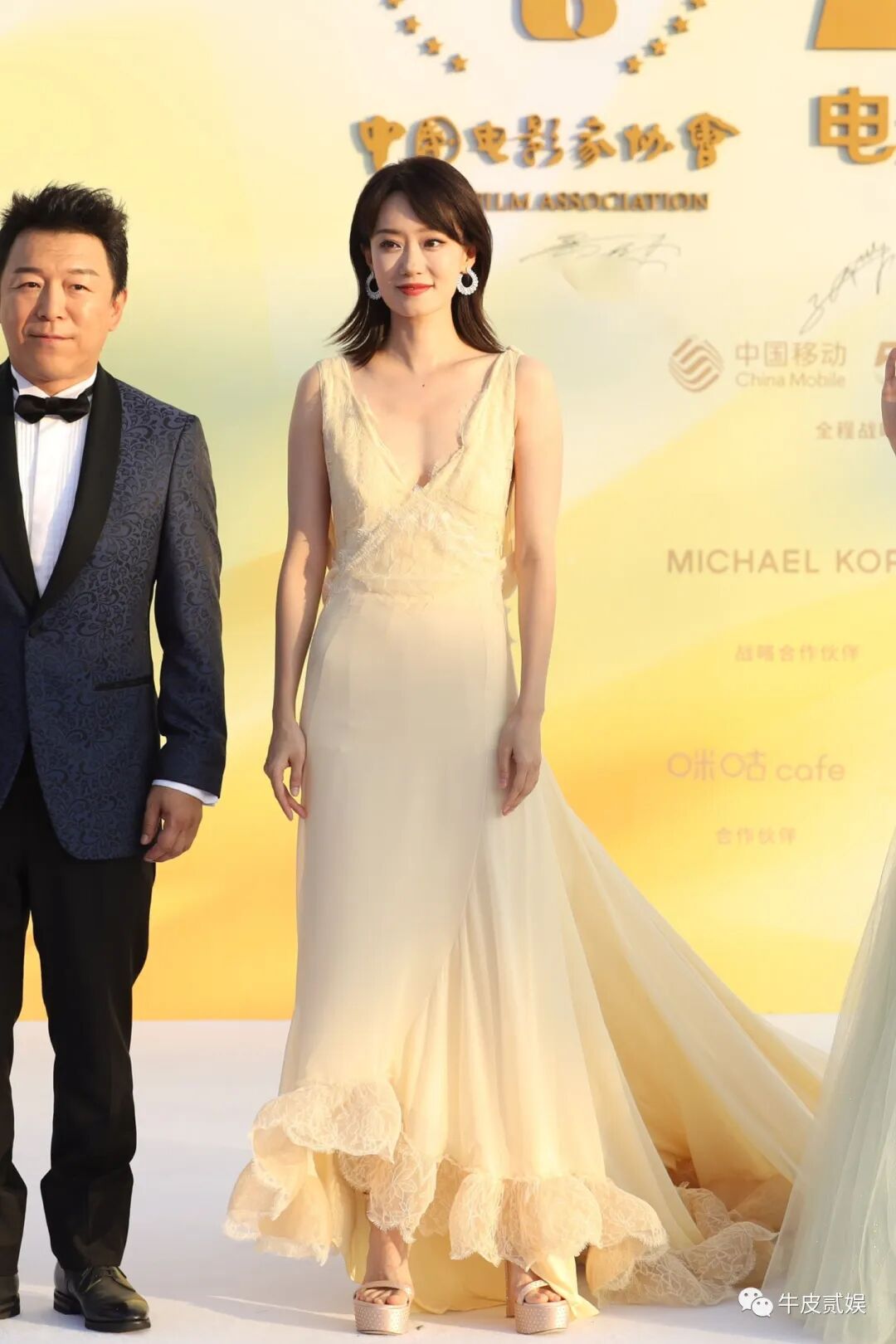 张小斐在走红毯时,选了一件米黄色的连衣裙,显得她很温柔,很含蓄,一点也没有抢风头的动机。