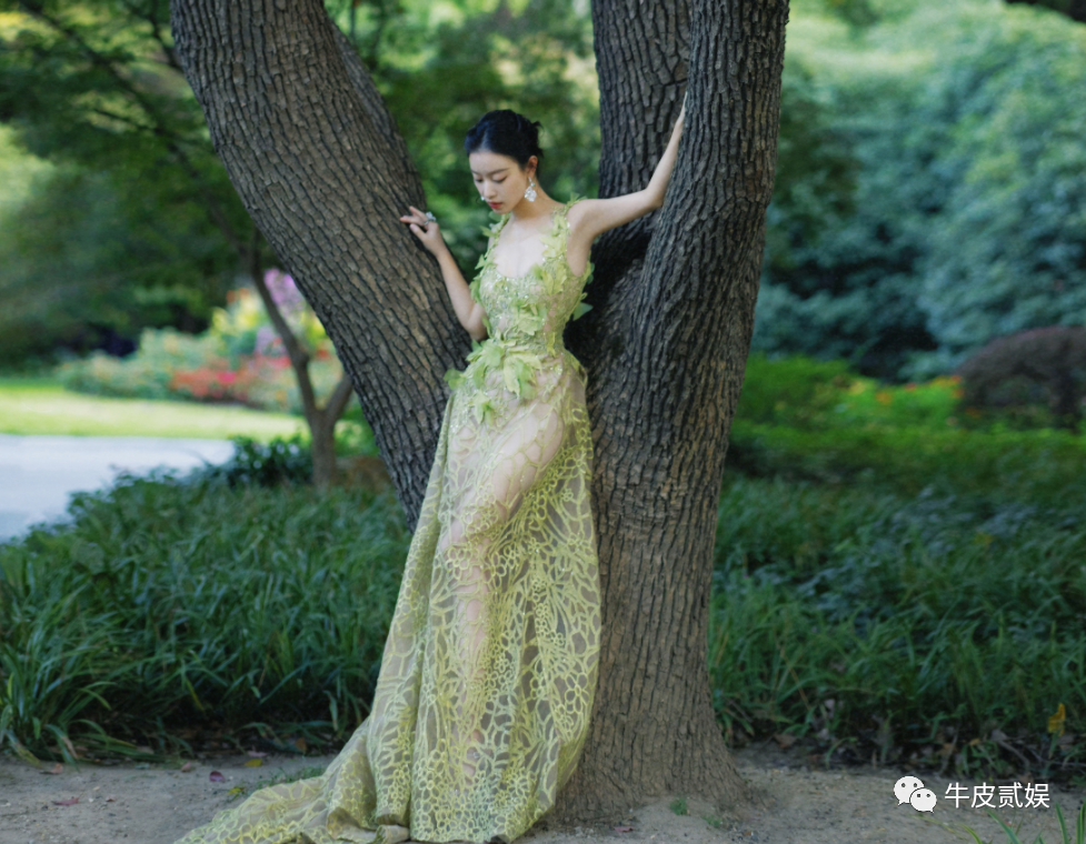 这种树叶和花瓣的衣服设计,让倪妮宛若丛林中走出来的仙子一般,美得让人抓狂。
