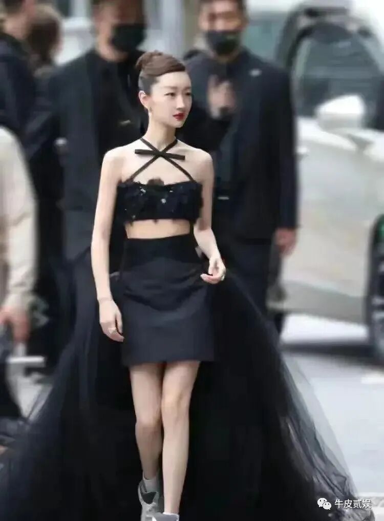 前段时间,周冬雨因为一件高奢礼服,又上热搜了,画面中的她,穿上这套挂脖礼服后,显得头大身子小,一抹黑布浮在胸前,完全一点起伏的痕迹。