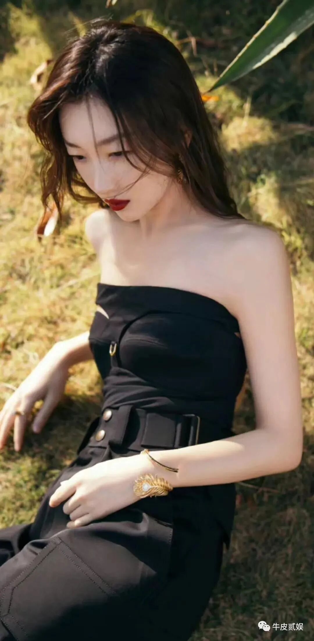 欲女如钟楚曦,黑色亮片礼服裙,配上她那大红唇,波浪长发,欲女味很浓;
