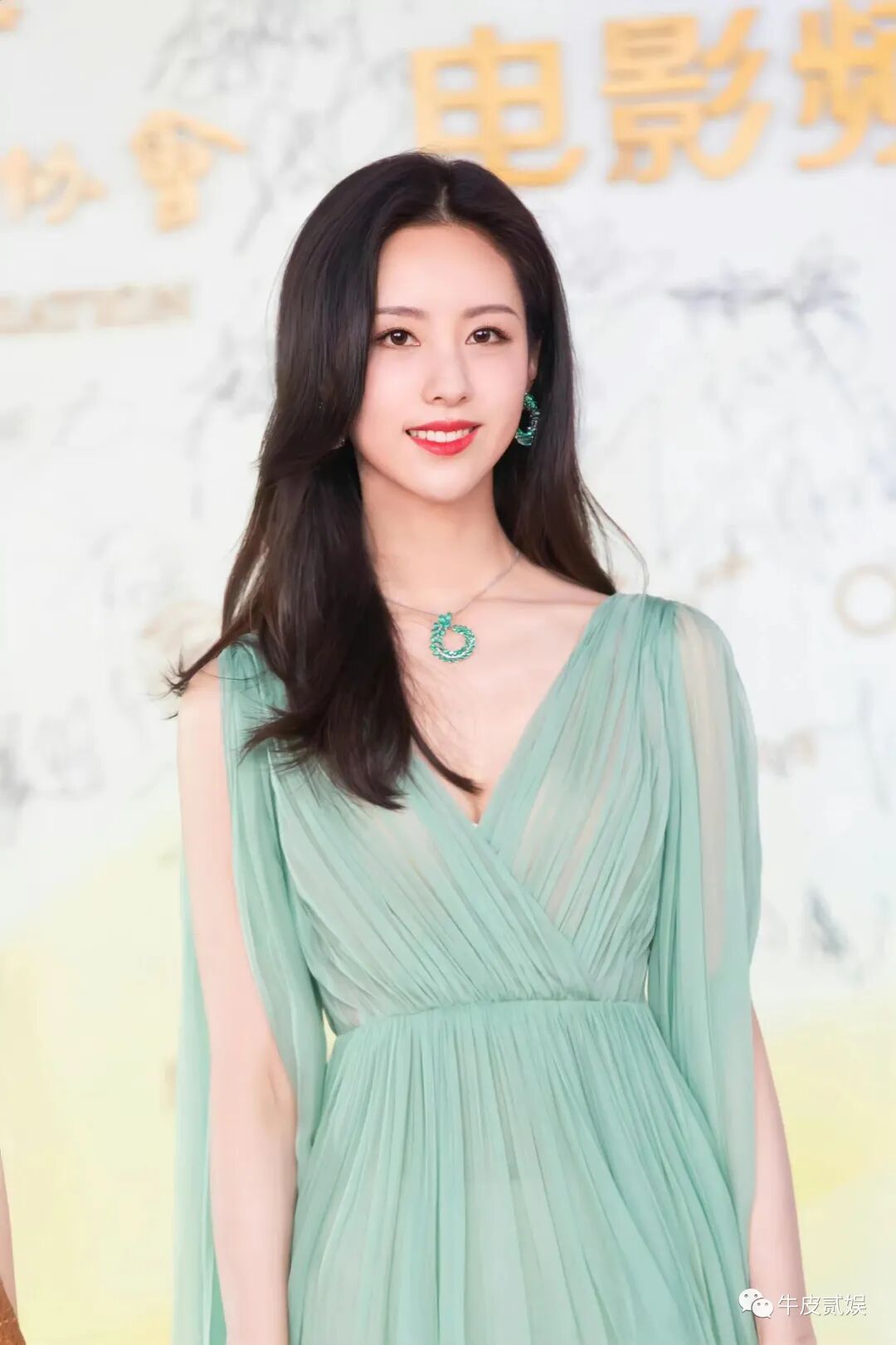 清纯如陈都灵,妆容干净自然,一袭浅绿色长裙加身,清新又脱俗;