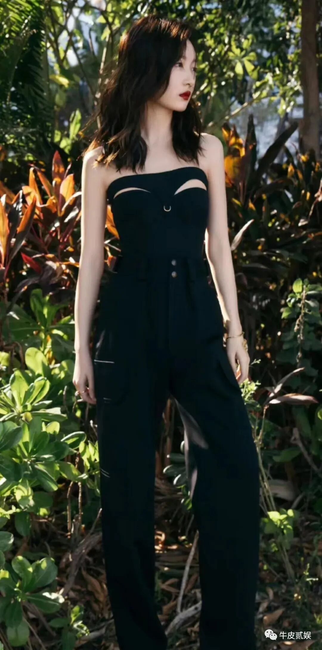 这次金鸡奖走红毯,周冬雨同样玩的是性感路线,她穿了一件黑色的抹胸连体裤,下身看起来很平常,但亮点都在上半身。