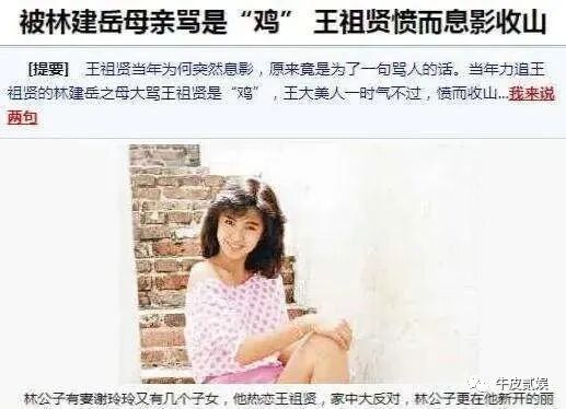只可惜,这段感情不但没有修成正果,还让王祖贤落得个小三的骂名,并被林建岳的母亲羞辱成“鸡”。